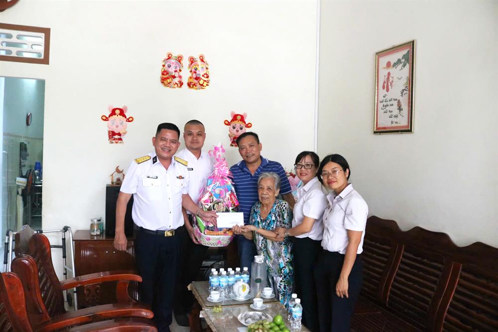 Tiếp theo, thực hiện các hoạt động dân vận, đền ơn đáp nghĩa trên địa bàn đóng quân, BLĐ công ty cùng các đồng chí CB/NV, các tổ chức quần chúng đã thăm, tặng quà cho cụ Nguyễn Thị Tư là thân nhân liệt sĩ TCT TCSG đang phụng dưỡng; thăm hỏi, động viên, tặng quà cho các đồng chí thương, bệnh binh trên địa bàn phường Cam Ranh và xã Nam Cam Ranh; dâng hương tưởng niệm các anh hùng liệt sĩ tại khu tưởng niệm chiến sĩ Gạc ma